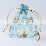 Wholesale Drawstring Rectangle Blue Angel Pattern Custom Organza Jewelry Bags