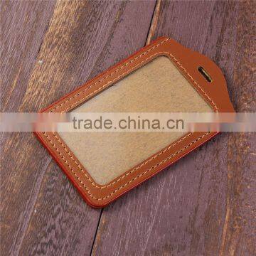 Top Quality Brown Business Leather Vertical ID Card Holder photo-2