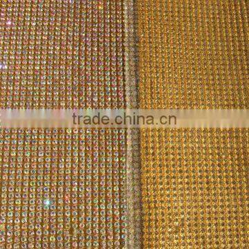 hot fix chaton metal base rhinestone trimming metal mesh crystal AB gold base mesh