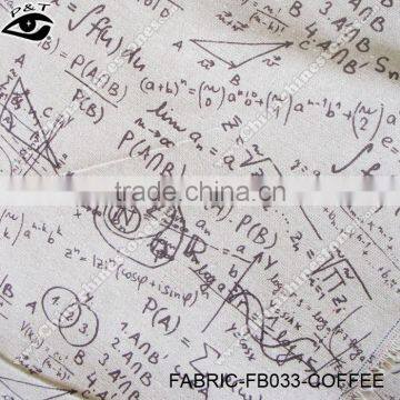 Math Equation Coffee Color Printed Linen Fabrics