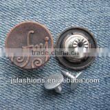 Letter Printed Rust Color Brass Jeans Button, Fashion Brass Shank Button for Denim Clothes