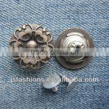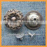 New Arrivals Customized Flower Engraved Alloy Shank Jeans Button With Vintage Color Cap