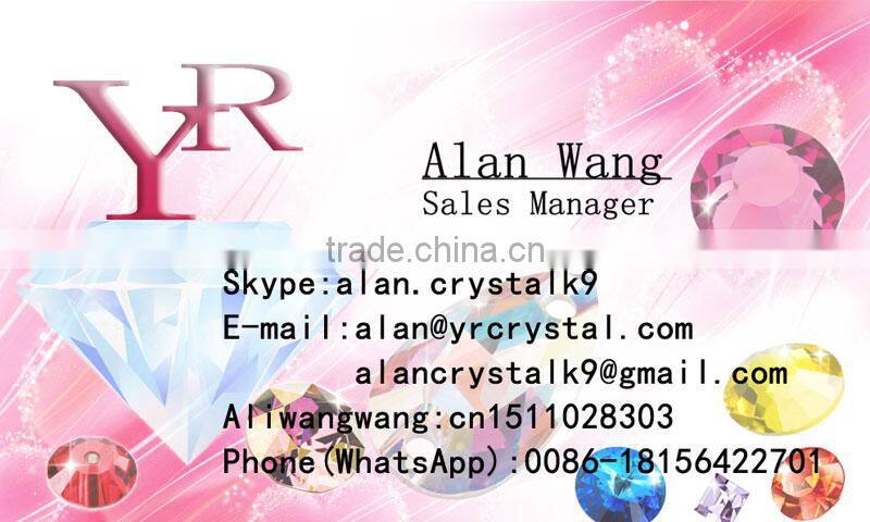 Flat Backs No Hotfix (NoHF) are loose crystal components with a platinum foiling on the back for extra brilliance and protection. Flat Backs NoHF are easy to apply to a variety of carrier materials using standard one- or two component glues. They are available in a multitude of colors, shapes and cuts. we can do this style can be with two holes to sewing or without holes to gule