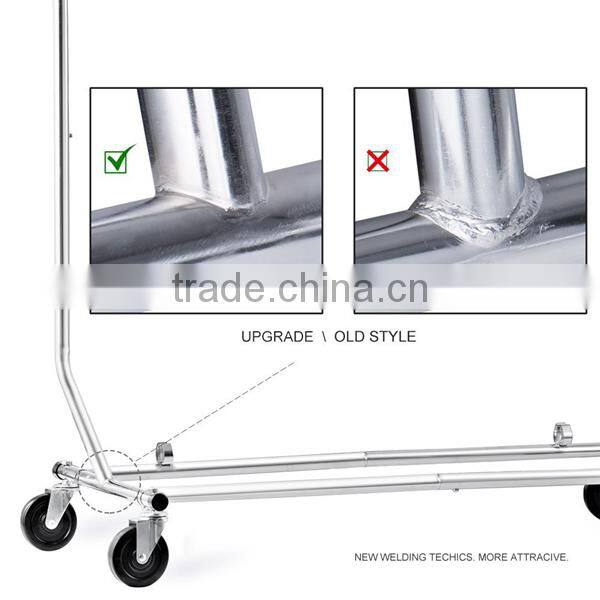 1. This garment rolling rack is made with four wheels, two of them have brake, easy to move and stop.