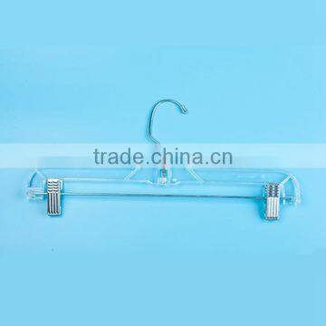 This skirt hanger is made of high quality PS+PE material, ultra clear, comes with metal clip. It is durable and useful, very popuar in the market.