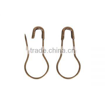 2. Steel safety pin & copper safety pin are the most common two materials. Four colors are available now: Silver, gold, and black. You can find both nickel & nickel free safety pins here!