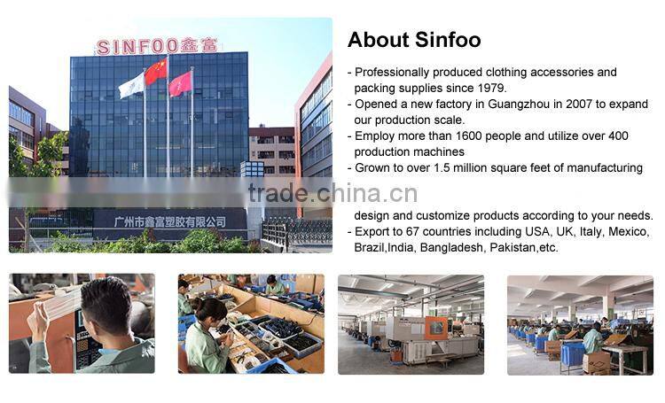 Guangzhou Sinfoo Plastic Co. Ltd is one of the largest Chinese producers and exporters of clothing accessories and store display products since 1979. To expand our production scale, we opened a new factory in Guangzhou in 2007.