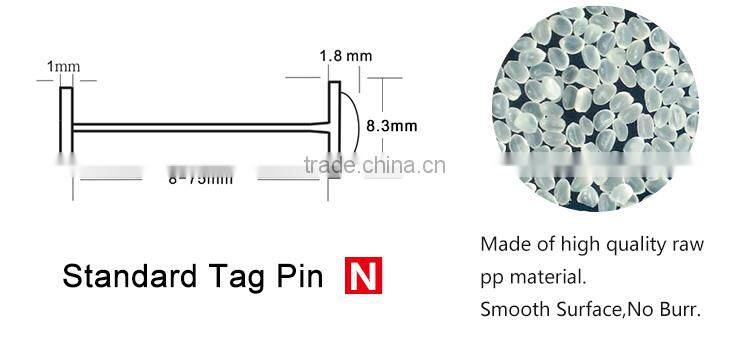 This standard N mould tag pin is used with standard tag guns, such as Arrow 9S Tag Gun, 08S Tag Gun, 09S Tag Gun, etc