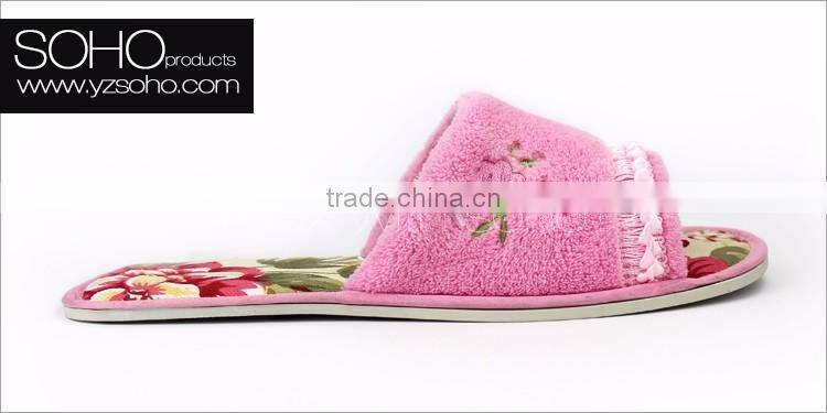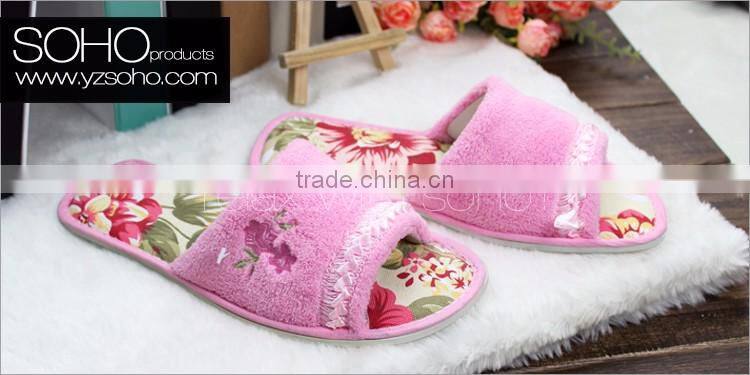 2017 Attractive Design Flat Resort Logo Embroidered Velvet Eva Hotel Slippers Indoor Slipper