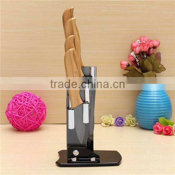 2017 New High Quality Bamboo Handle Ceramic Knife Blade Black Suit Exquisite Kitchen Knife With Holder