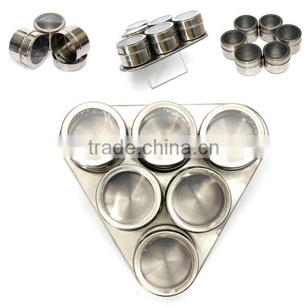Useful 6 Pcs set spice Stainless Steel magnetic Cruet condiments spice rack pots Set for spice