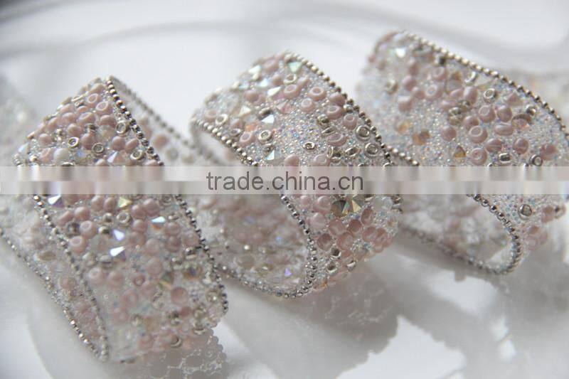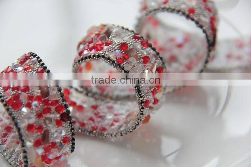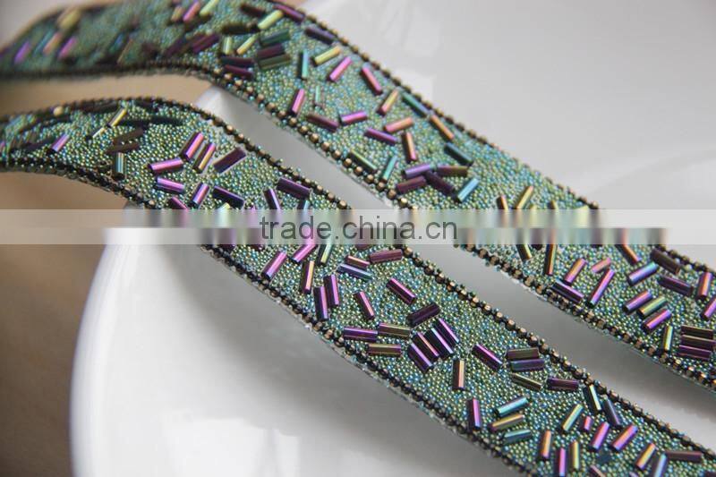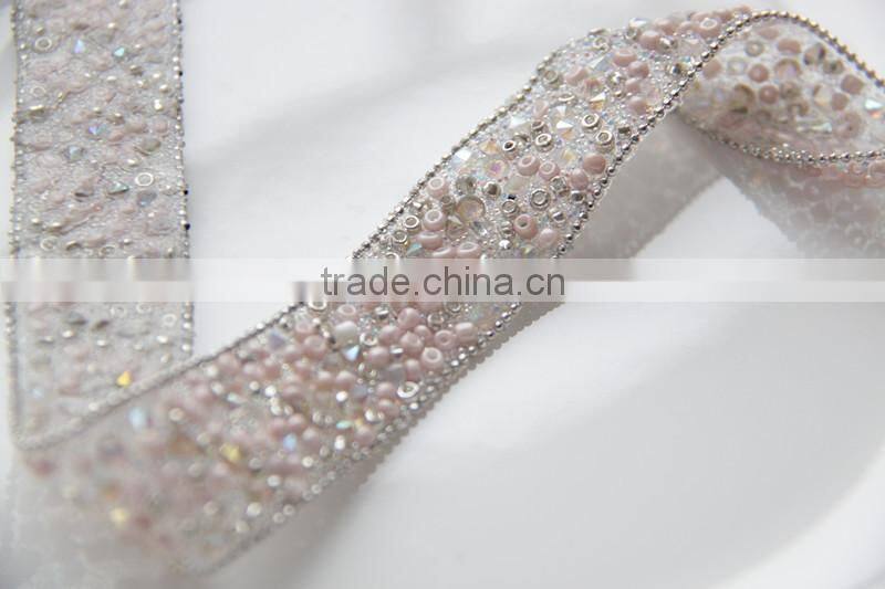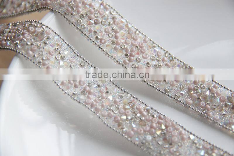 Rhinestone Beaded fashion Vintage Mesh Fabric Paillette Trim Lace
