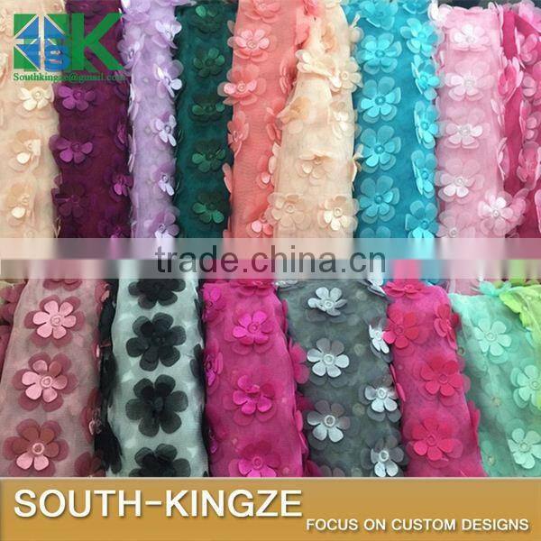 2016 Fashion Lace Fabric Multicolor 3D Flower Chiffon 130cm Double Layer Embroidered DIY Wedding Dress Clothing Accessories s 20