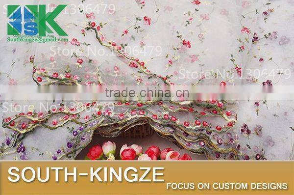 2016 Fashion Lace Fabric Exquisite Organza Jacquard Embroidery Small Multicolor Roses Fabrics DIY Clothing Accessories 2016 Fas