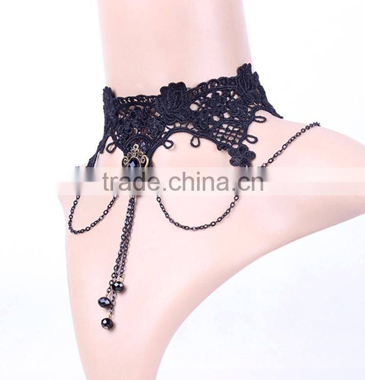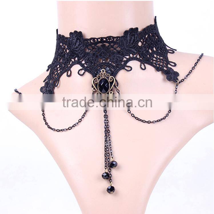 European and American Retro Party Queen Necklace Crystal Pendant False Collar Lace Necklace