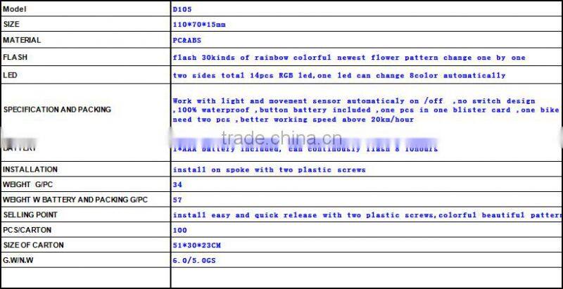 D105 Waterproof 14 Led Programmed Changeable Patterns Bicycle Light Plastic Led Bike Wheel Light