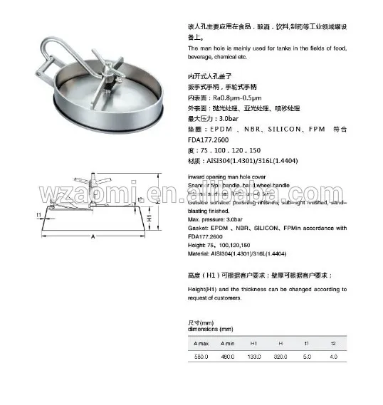 Low Cost and High Quality Sanitary Stainless Sanitary Manhole Cover Series