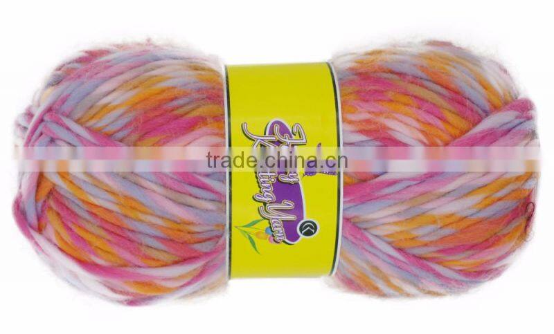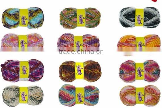 This new fashion product is popular knitting and weaving materials which can be used to make sweaters, gloves, caps, scarves, carpets, bathrobes, etc. It is a fashion hand knitting yarn for hand crafts.