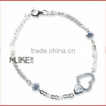 heart 925 silver bracelet with CZ stonewith rhodium platingheart shape,CZ stone