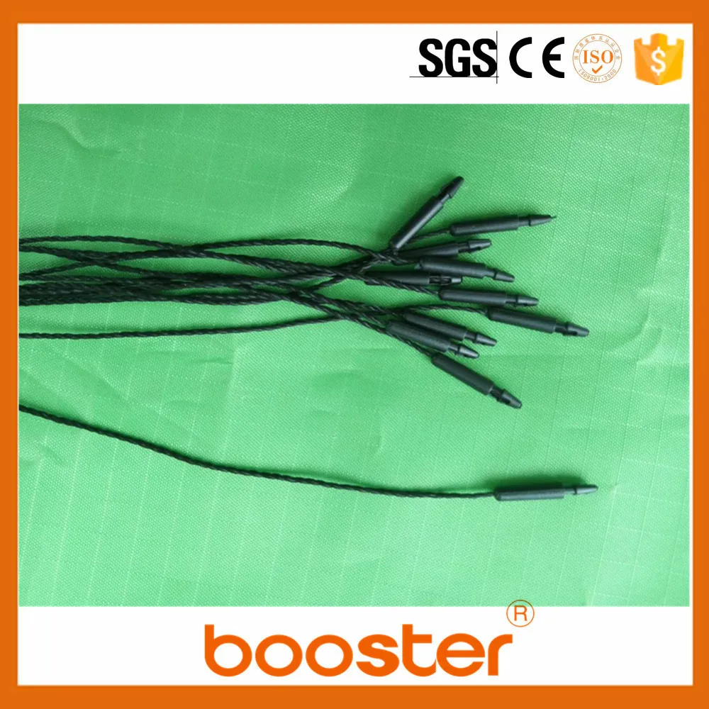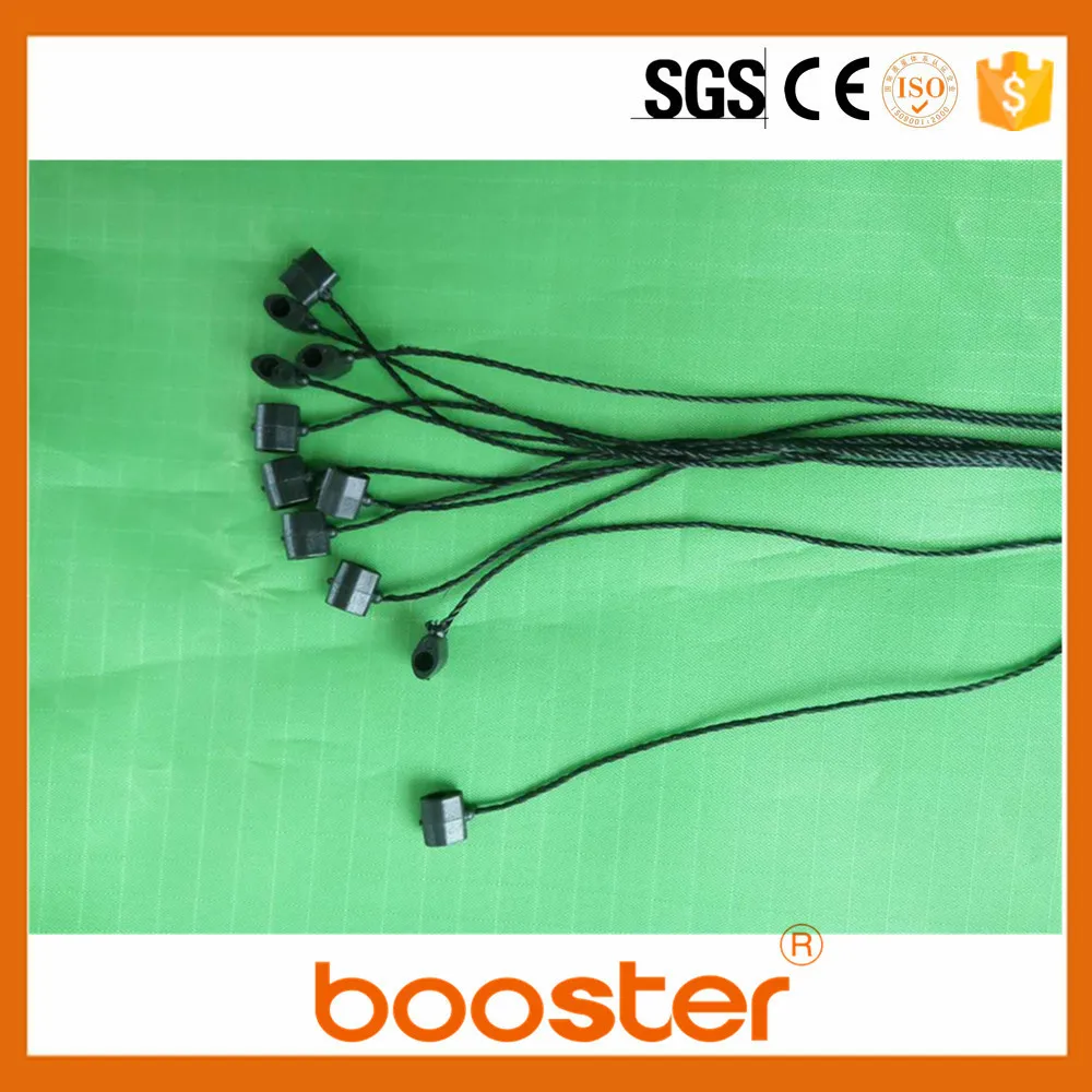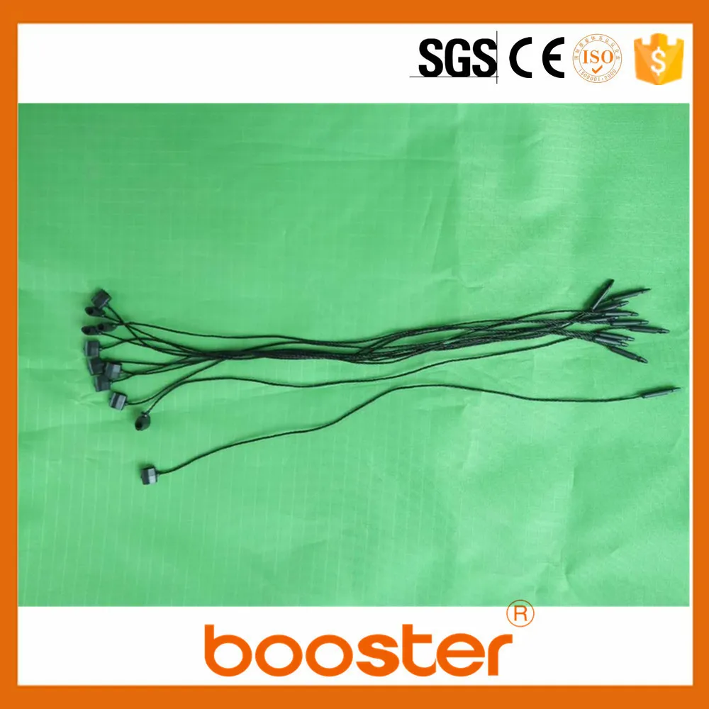 Booster garment plastic hang tag string