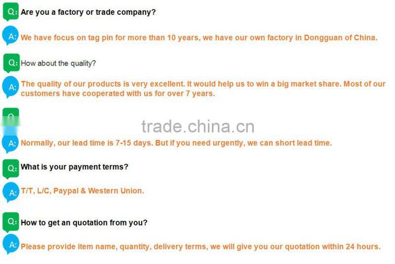 Our major products includes Plastic staple pin, Elastic staple pin, Standard tag pin, Fine pin, Micro pin, Hook pin, Ring pin, Loop pin, Pearl tie, Cable tie, Plastic staple attacher, Elastic staple machine(VNS), Tag gun, Cable gun, R-clips and Hang hooks and so on.