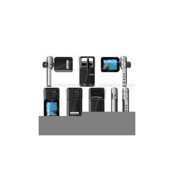 Description:Features: 1) 11-in-1 featured: digital video camcorder, digital still camera, pc camera, MP3 player, mass storage device, video recorder, video player, motion stabilization, remote control, games and AV in and out 2) Pocket size, handy camcorder 3) Most friendly user interface 4) 5 Games function 5) MPEG-4 image compression technology with high image resolution-DVD quality 6) Panasonic 5MP CCD pixels high quality sensor with interpolation up to 12MP 7) 32MB internal flash memory and SD / MMC card slot up to 2GB storage 8) Taking picture while recording the video 9) Voice-added function while playing the picture 10) Enjoy the TV program you like anytime, anywhere by TV in function 11) 12 kinds of photo scenario and 11 modes of effect make your photo more colorful 12) Motion stabilization function on video mode 13) 2.5 inch super wide LTPS LCD panel with 270 degree screen rotation 14) 8X digital zoom 15) Use 3.7V DC / 1000mAh rechargeable Li-ion battery 16) Video TV out for NTSC / PAL system 17) Date stamp on pictures 18) Remaining memory / recording time management 19) Provide multi-language display Inner packing: Gift box