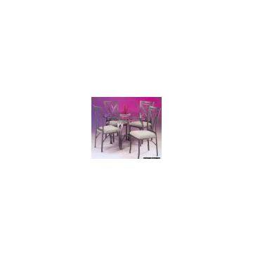 Description:Dining table and 4 chairs Gold bronze finish w/ fabric 8mm circle bevel clear glass Products size: Table:1143X750 Chair:550X457X1000 Glass:1143X8