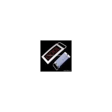 Description:1) LED: 21x7 dot matrix 2) Display area: 68x23mm 3) Size: 115x50x18mm 4) Can be only LED, or with the buckle 5) Power supply: 2pcs CR2032 button batteries 6) Available with 96 different characters for choice 7) Can store 6 messages; 1 can store 512 characters; 2-6 can store 256 characters 8) With 9 levels Speed and Lum 9) Data communication: Can be operated through 3 buttons by hand Easily 10) LED color: red blue, green, yellow, white, pink, three colors mixed 11) Weight: 83g (absence battery)