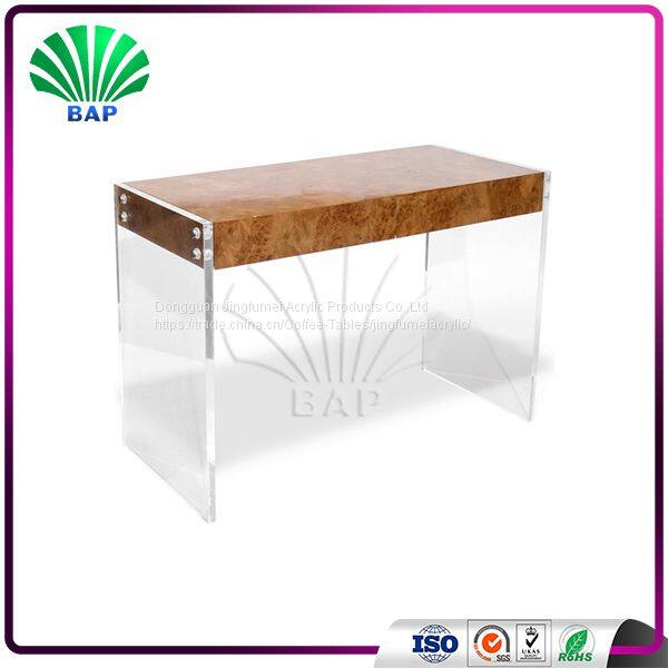 High Quality Wooden Top Office Desk With Drawers Plexiglass Table Legs