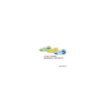 Description:Product Name: Correction TapesModel Number: HT-642Place of Origin: ChinaFeatures: 1) Fast and clean, immediate rewriting 2) Environmental friendly, non-toxic, refillable 3) Correction will not show on photo copies and fax 4) With Japanese tape 5) Validity: 2 years Instruction: Hold correction tape at about 50, so that tape is flat on to surface. Press and pull tape slowly on surface. Changing refill: 1) Remove cap 2) Open the plastic lock, keep the upper part of correction tape. Throw away the lowest part 3) Replace new lower part of correction tape, replace the original upper part and the plastic lock
