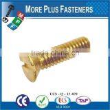Made in Taiwan Machine Screw Metric DIN 963 ISO 2009 Slotted Flat Head Countersunk Brass and Stainless Steel