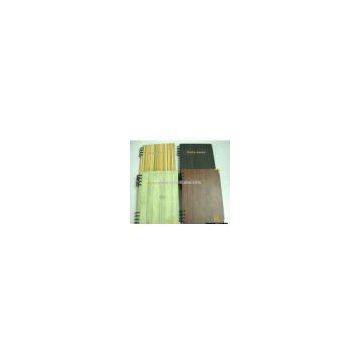 Description:Features: 1) Sizes: A4/A5 2) Cover: wooden board coated PVC paper, glyphography logo, metal fastener on the corner 3) Inner: 100 sheets 70gsm wood free paper, 1C+1C 4) Binding: double wire-o Packing: 1pc/OPP bag