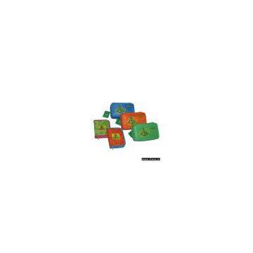 Description:Features: D5104: 1) Mini one-zipper pencil case 2) Material: 300D polyester 3) Includes: a) 6 3.5" jumbo wooden color pencils b) 1 jumbo eraser c) 1 sharpener d) 1 card paper D5102: 1) Three-zipper pencil case 2) Material: 70D polyester 3) Includes: a) 12 7" wooden color pencils b) 20 water color pens c) Scissors d) 1 ruler set e) 2 pencils f) 2 ball pens g) 1 eraser h) 1 sharpener