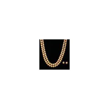 Specifications: Product: Freshwater hyderabad natural pearl set Pearl size:5mm - 8mm Metal base/clasp: Surgical metal with italian gold finish Pearl colour: Pink Pearls shape: Round Strands/length:2 row 17 & 18 inches Uniformity: V. Good/excellent No. Of pieces:1 set consists of necklace and earring