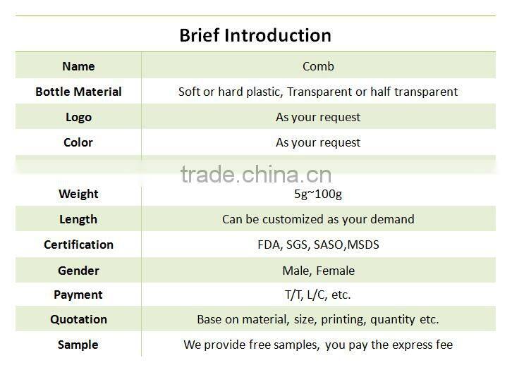 Plastic Wide Tooth Hair Comb Brush Hotel Personalized Combs