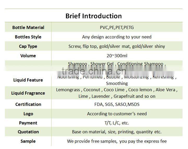 Cheap Disposable Hotel Bottle for Hair Shampoo and Bath Gel