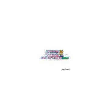 Description:Product Name: Household Aluminum FoilsPlace of Origin: ChinaSpecifications: 1) Width: 250 - 600mm 2) Thickness: 11 - 25micron 3) Length: 3 - 300m Inner packing: Each roll in a color box or PP bag, with / without blade Color box according to clients' design, with Ashburn's brand or buyer's labels