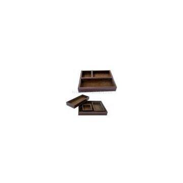 Description:Leather tray set Made of PVC leatherette with contrast sewing, velvet lining. A set of four trays.