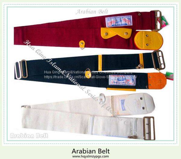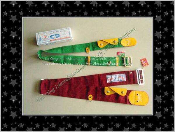 Arab belts have many colors: dark green,black green,purple,black,white and so on, specification: 2 inch, 2.5 inch, 3 inch, length: 40/42/44/46/48 inch, packing: 1 pc/box 1 dozen/inside box, 120pcs/carton,mixed color packing or monochrome packing. The belt perennially exported to Yemen,Malaysia,Algeria,Saudi Arabia,the Middle East and Gulf countries, we undertaking foreign trade orders perennially. Meanwhile,our company also produce Arabian head hoop ,Arab teenager wool head hoop,Arabian turban,Arabian hand hoop,Koran bookshelf and other Arabian producuts,welcome customers come to order.
