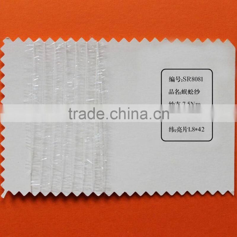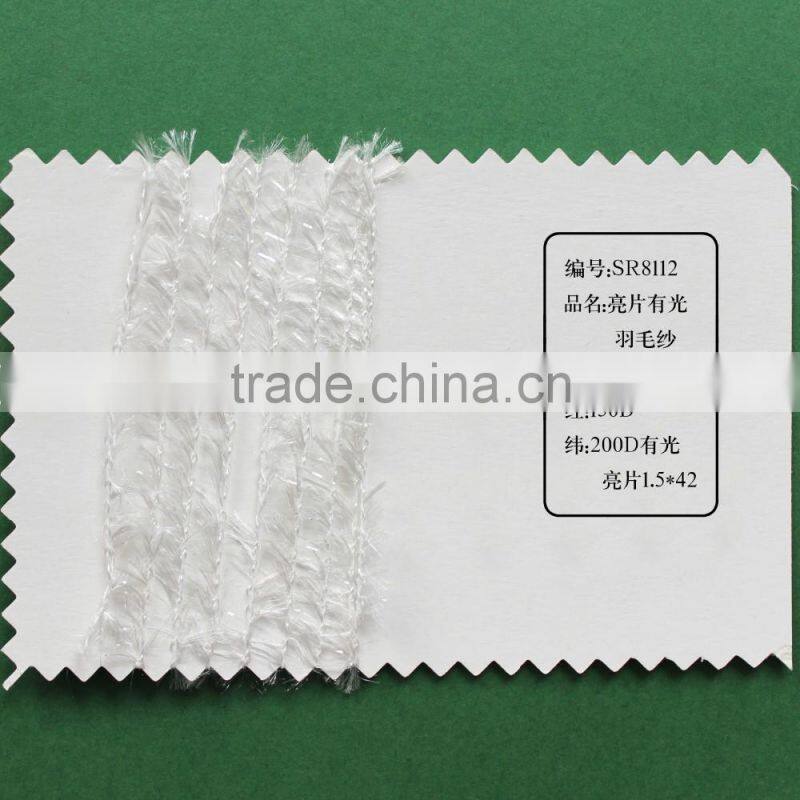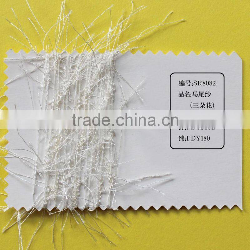 such as chenille yarn, feather yarn, lurex yarn, centipede yarn, flag yarn, tape yarn, ladder yarn, eyelash yarn, butterfly yarn, dragonfly yarn,chenille yarn, loop yarn, fancy twist yarn, bulky yarn, mulberry yarn, ribbon yarn, porcupine yarn, wave yarn and etc for knitting, weaving, hosiery and socks