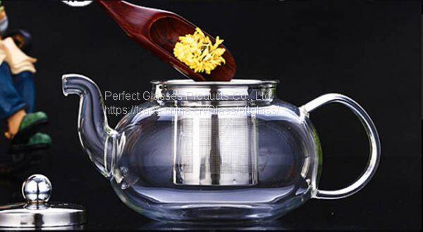 Wholesale handmade 600ML,800ML Tempered Glass Tea & Coffee Pot Tea Maker Infuser With Stainless Steel Basket