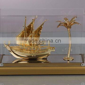 NEW Style High Quality Beautiful 24k Gold Plated Dhow and Coconut Tree Model With Home Office Decor & Gift