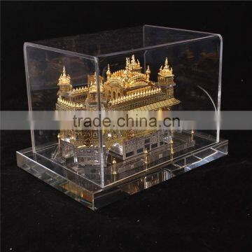Laser Engraved Indian Golden Temple in 3D Cube Religious Crystal Souvenirs Crystal Gifts