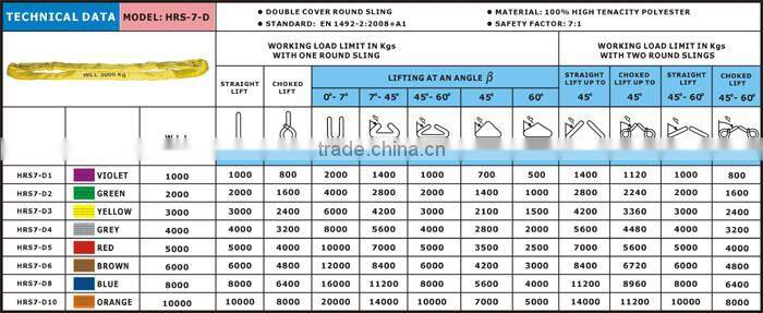 Polyester Round Sling made of 100% Polyester according to ASME B30.9