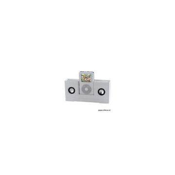 Description:Features: 1) Portable size, easy to carry 2) High quality stereo sound 3) Cosmetically designed to match the iPod, it will also work with any portable CD and MP3 player 4) It can be powered either through AC adaptors or batteries 5) Dimensions: 19.0 x 8.8 x 4.5cm 6) Weight: 240g Specification: 1) Power supply: DC 6.0V (4 x AAA batteries) or AC adaptor (6V, 1A) 2) Output power: 2.1 x 2W 3) Frequency: 100Hz- 20kHz 4) S/N: 85dB 5) Material: ABS