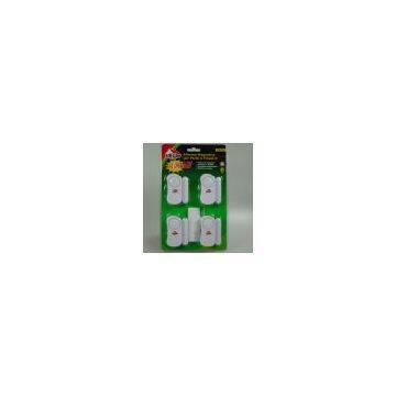 Material: Housing ABS Safety Certificate - CE Features: - Wireless alarm - Double function device, door chime/window and door alarm - Just peel and stick to window or door frame with double-sided adhesive tape (included) - Open connection will sound the 105db alarm - Door chime sound is 80db - 3 x LR44 battery operated (included) Warrantee - 2 YEAR Packing type - Clam shell