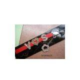 Description:Features: 1) Size: length220mm x width30mm+length105mm x width10mm 2) Letter material: chrome plated zinc alloy (safety test passed), changeable 3) strap material: PU, changeable 4) Pendant decoration material: chrome plated zinc alloy (safety test passed), CZ stone, changeable 5) Handmade, good workmanship 6) Customers' logos and designs are welcomed