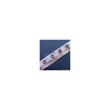 Description:Features: 1) Material: satin tape,plastic beads 2) Various colors available 3) Ideal for decorating garments, bags, shoes and curtains 4) Various designs available 5) Excellent quality Inner packing: 10m/card