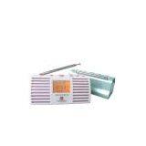 Description:Features: 1. Display calendar at any time in liquid crystal display 2. 8 seconds automatic back-light 3. Double trumpet with stereo sound quality 4. AM / FM two-band PLL digital radio 5. Microcomputer control, search the radio stations and store automatically 6. 40 radio bands for memory (20 each on AM/FM bands) 7. Contain12 songs and auto-repeat with 16-tune music 8. Set your favorite broadcasting station or music as the alarm clock rings 9. Two independent alarm functions 10. Automatic alarm clock close system 11. AC-DC 3.0V or 2 x AA batteries 12. Embedded power management IC 13. More energy-efficient
