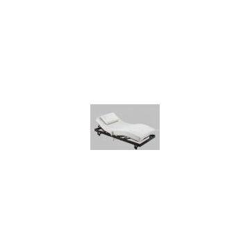 Massage bed contain a wooden bed frame, a electric adjustable bed with vibration massage and natural latex mattress and pillow.